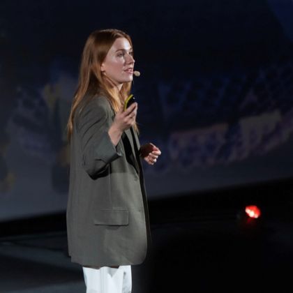 In her presentations on stage, female speaker Franziska Brandmeier is clear, warm and precise. As an actress, she brings presence and depth – delivering ideas in a way that lands, resonates, and stays with people.