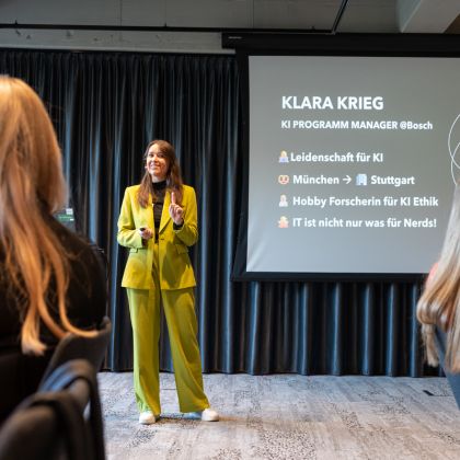 Beyond her professional work, divers speaker Klara Krieg is actively engaged in research on topics such as discriminatory AI and Fair AI. She speaks both internally at Bosch and on external stages, inspiring audiences with her clear, application-oriented perspective on Artificial Intelligence and offering a hands-on approach to this complex subject.